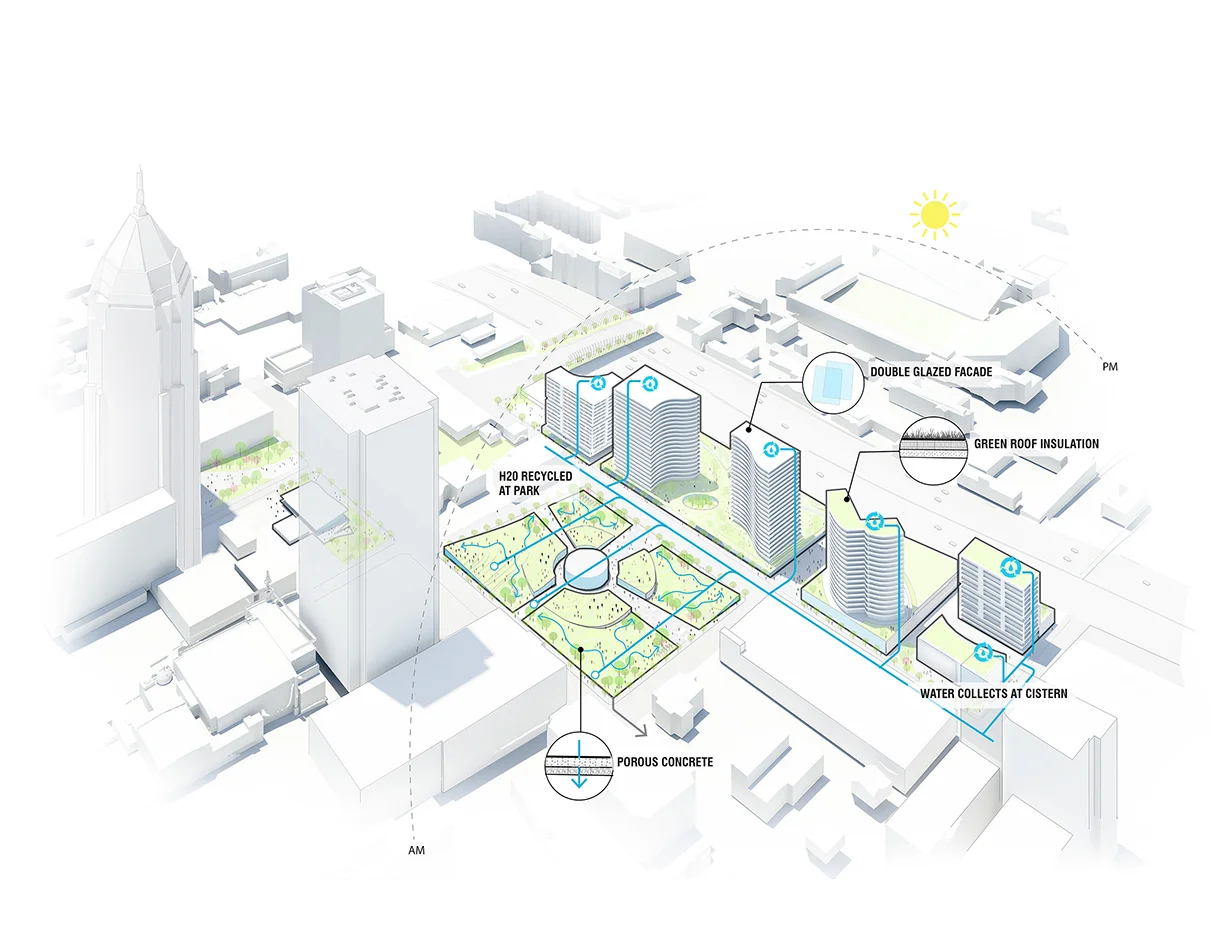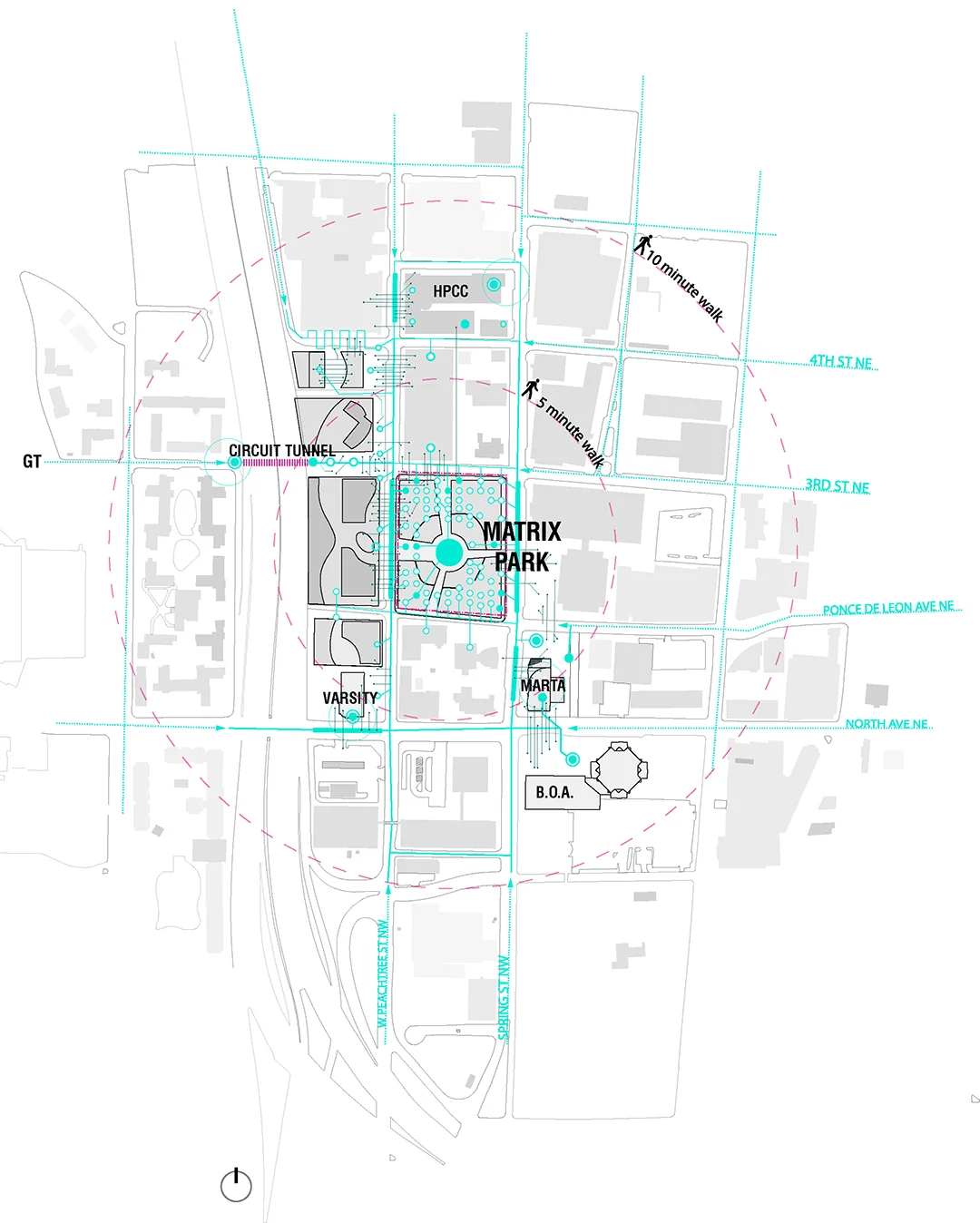 [MATRIX] Park is a mixed-use development program aptly named to reflect Midtown Atlanta’s role as the city’s lead district in technological advancements. It promotes urban space, connectivity, walk-ability, sustainability and opportunities to engage with the community.